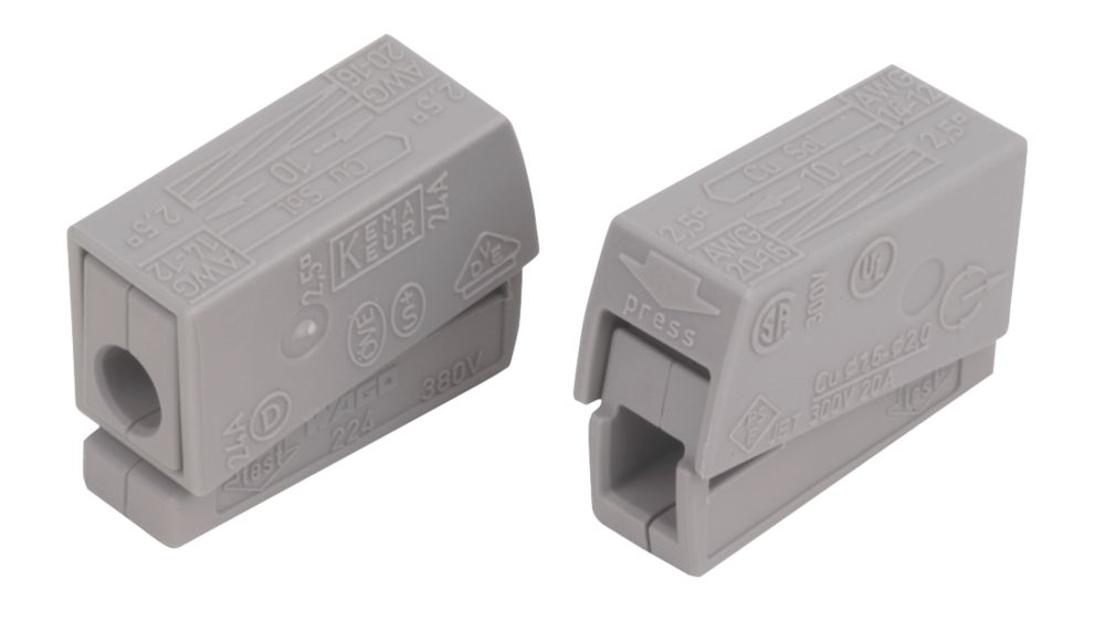 Borne d'éclairage à poussoir 2 broches Wago 24A, lot de 100 Code 149GM