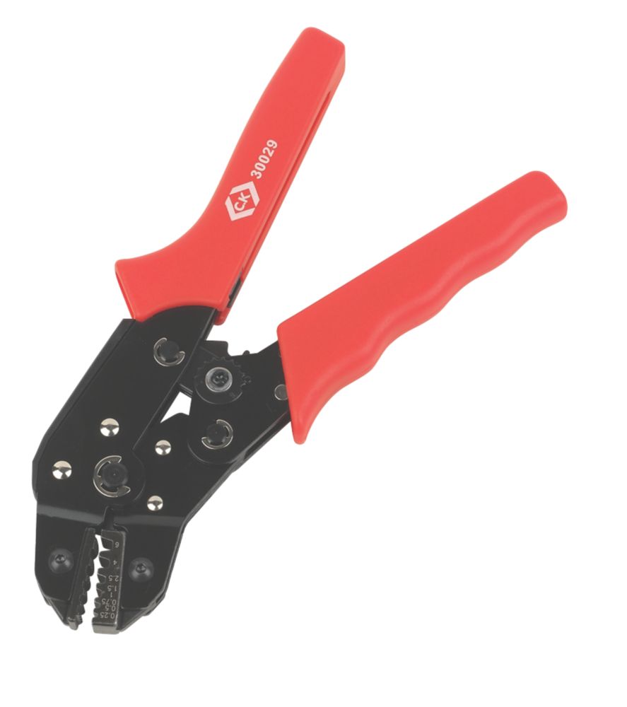 Sertit les cosses à embout rond de 0,25 à 6mm² Mâchoires en acier trempé Poignée ergonomique en plastique Dispositif de réglage de la pression pour un contrôle optimal Testé sur 40 000 cycles, garanti pour 30 000 Plus d'infos Marque C.K Code EAN / GTIN 5051074300294 Longueur (métrique) 195 mm Fabriqué en France Non Numéro de modèle 430029 Garantie du fabricant Garantie de 2 ans Nombre des positions du sertissage 6 Type du lot Simple Type de pince Pince à sertir