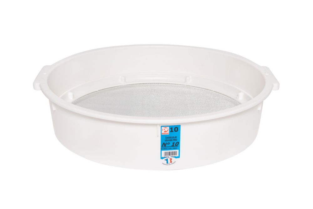 Tamis ergonomique, adapté à un usage professionnel. Coque en plastique robuste avec bord renforcé et toile en acier galvanisé. Prise en main confortable grâce aux 2 poignées latérales. Empilable et facile à ranger.