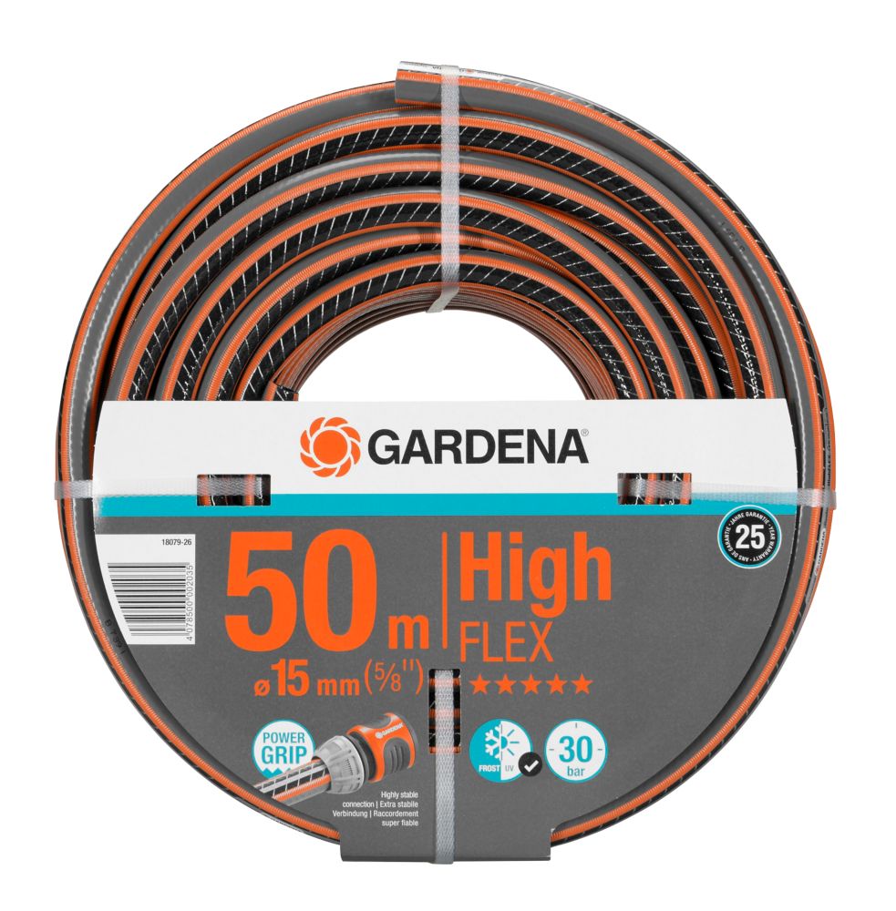 Tuyau arrosage Gardena High Flex gris / orange L. 50m diam. 15 mm Code 178TX