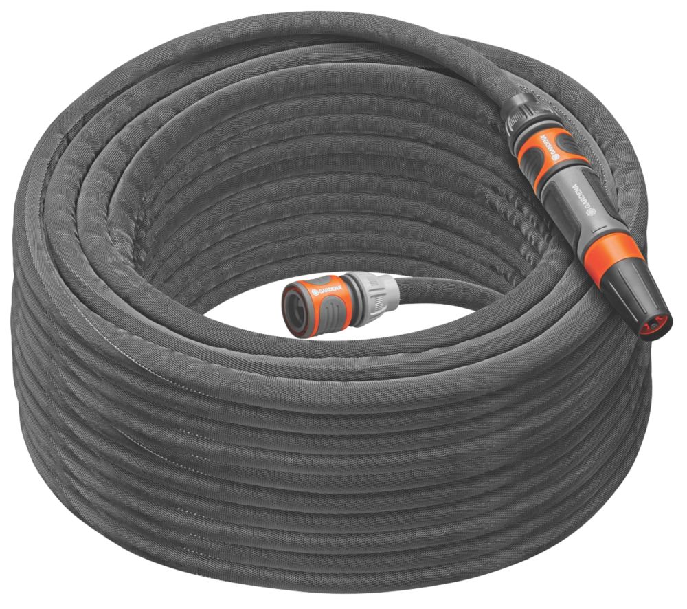 Tuyau en textile polyvalent proposé dans un kit pratique pour les périodes d'arrosage courtes à moyennes dans les jardins de taille moyenne à grande. Grâce à l'embout de réduction intégré dans l'un des 2 nez de robinet, le branchement à 3 tailles de robinet différentes est possible. Le flexible intérieur en PVC, très souple, et le flexible extérieur, très innovant, sont fabriqués en tissu textile résistant. Permet de manipuler le tuyau confortablement, car il ne se plie pas et peut être facilement guidé autour des obstacles. Jusqu'à 50% plus léger que les flexibles en PVC classiques, ce qui augmente le confort, en particulier lors d'une utilisation prolongée. Le tissu offre une sensation anti-dérapante, ce qui lui permet de tenir fermement dans la main.