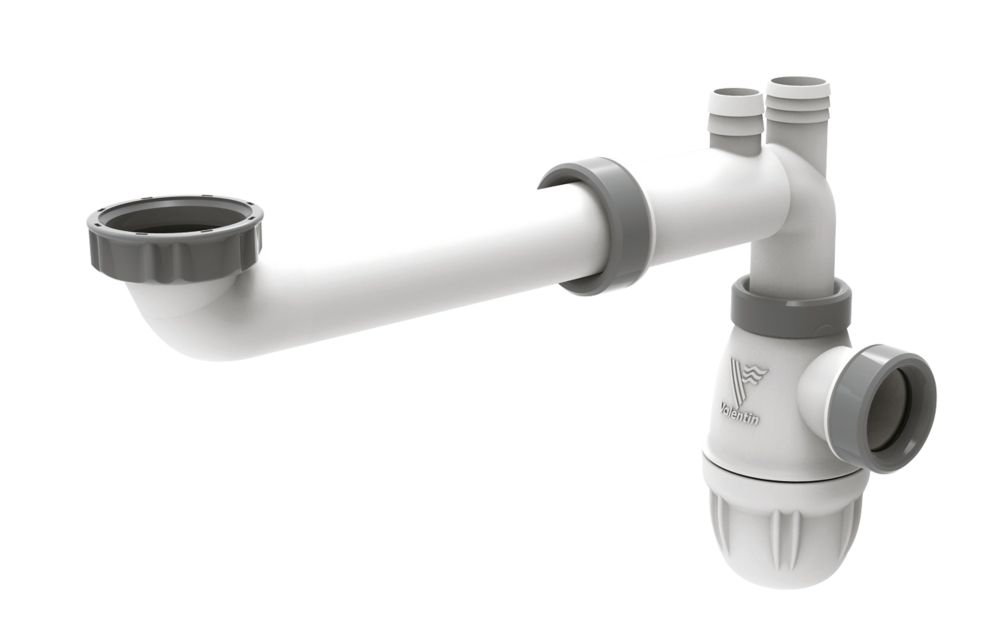 Tubulure gain d'espace bi-matière, joint intégré, hauteur sous lavabo 43 mm, entraxe réglable, sortie Ø32, débit 39l/mn, Technologie Connectic : montage 10 fois plus rapide, réglage hauteur/profondeur, prise machine/trop plein, NF
